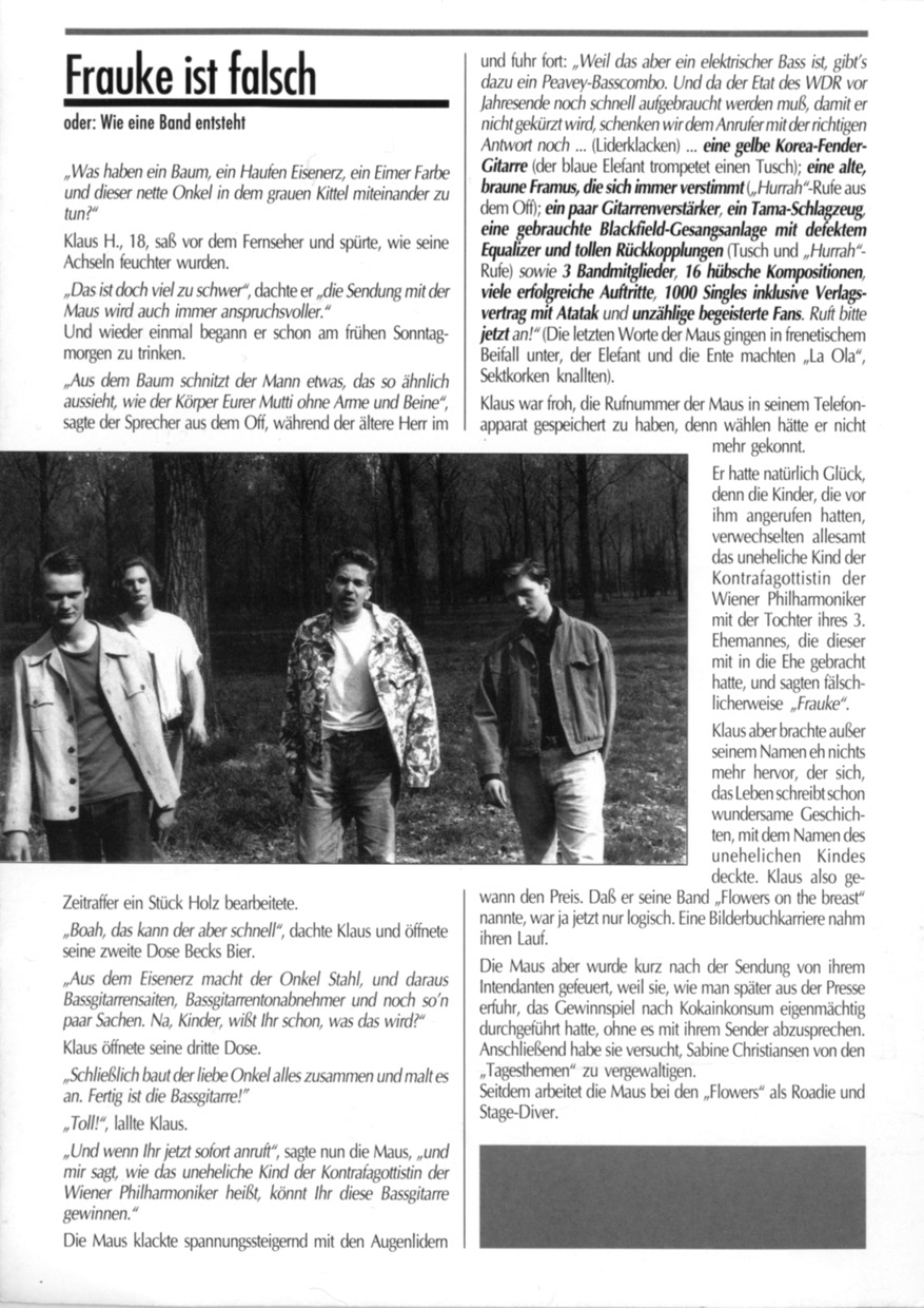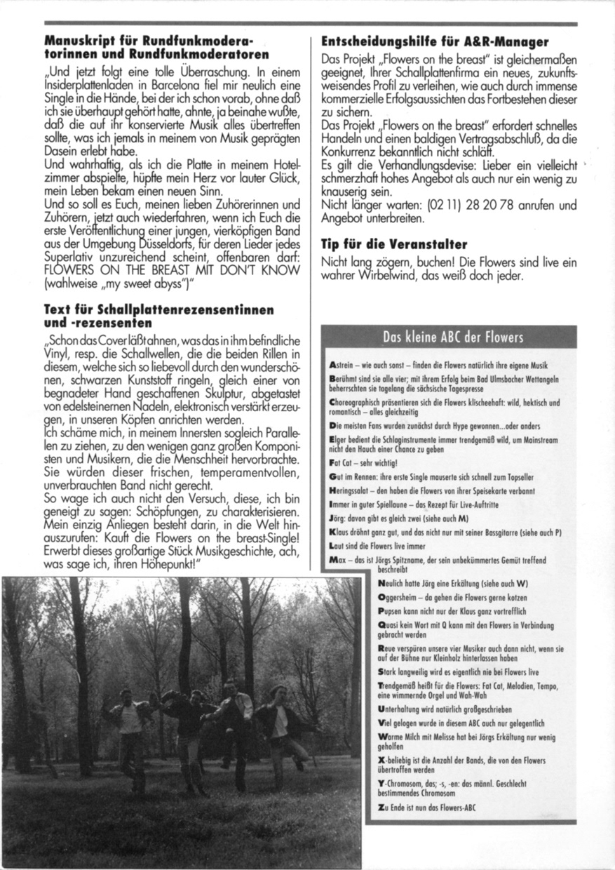 Eine Info-Broschüre über meine Band „Flowers on the breast“ aus dem Jahr 1991